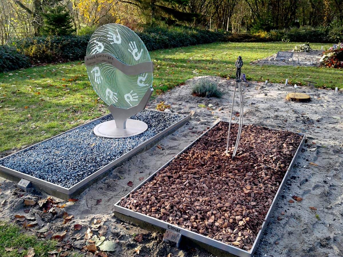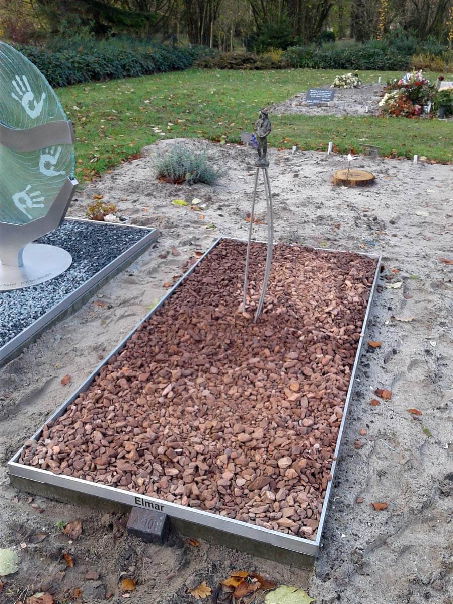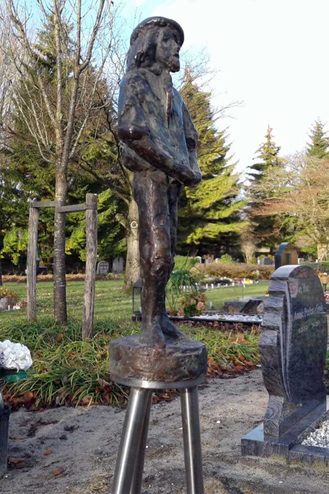 Het bescheiden en artistieke grafmonument van brons en RVS staat op de begraafplaats in Lelystad.