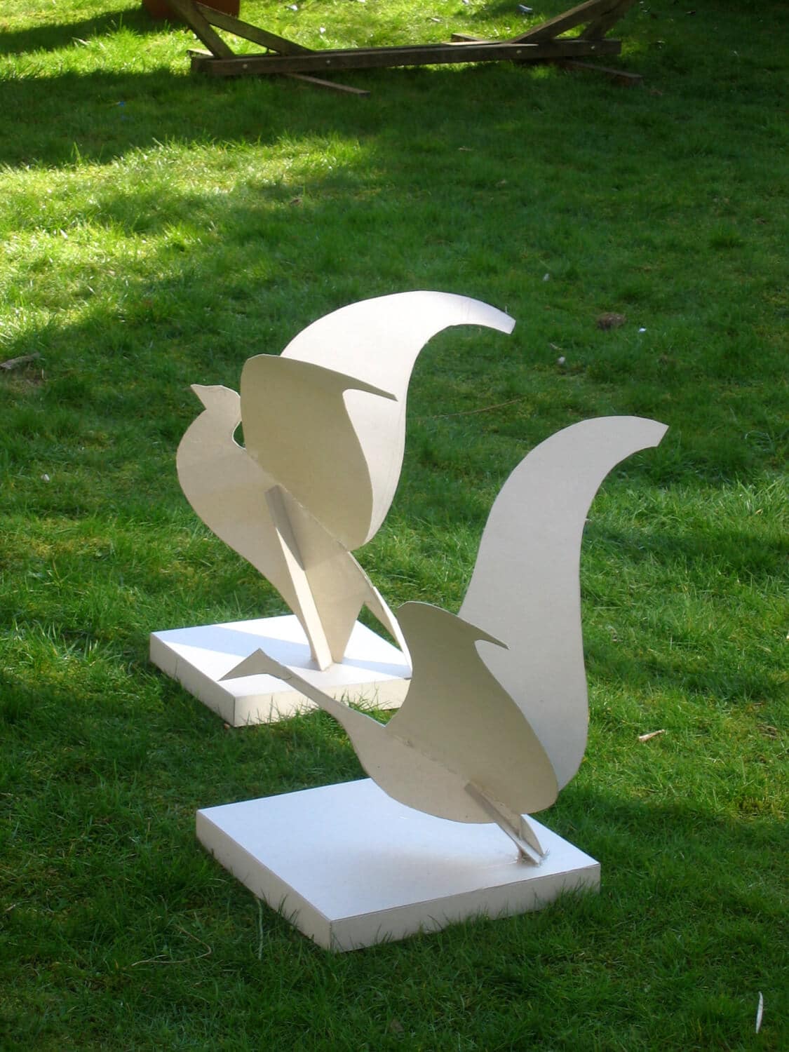 In samenspraak met de nabestaanden maakten we een aantal kleine modellen met verschillende vogels in karton. Van het model “familiegraf met vogel” dat de meeste voorkeur had maakten we eerst nog een mock-up op ware grootte van karton. Nadat dit was goedgekeurd voerden we de vogel in mooi en duurzaam RVS 316 uit.
