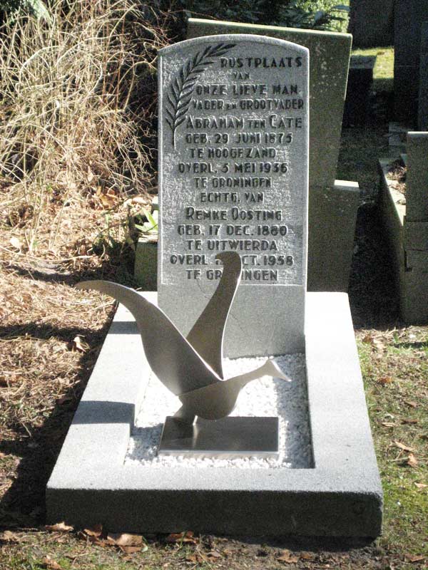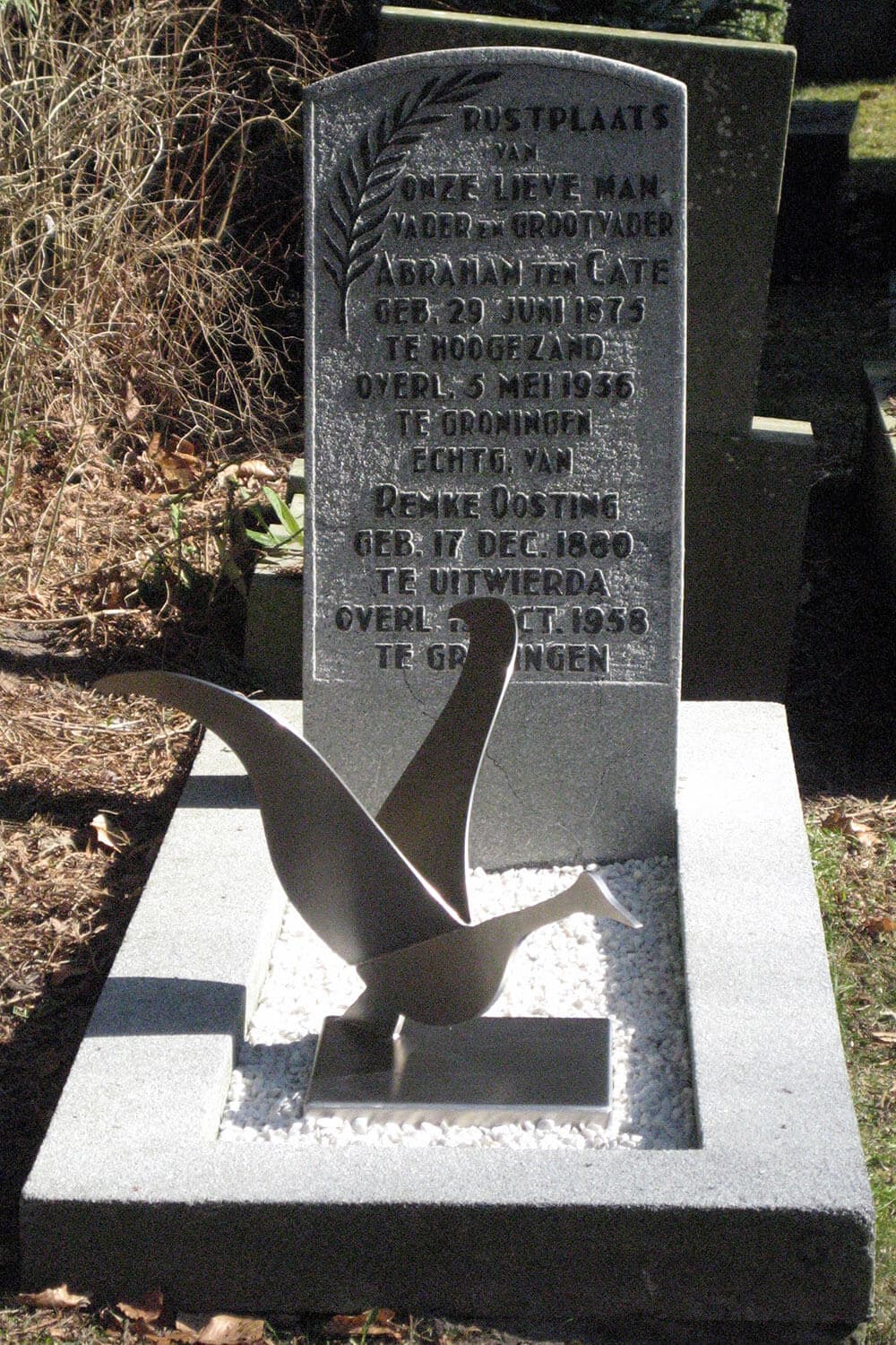 De familie plaatsten en monteerden de RVS vogel zelf op het familiegraf.