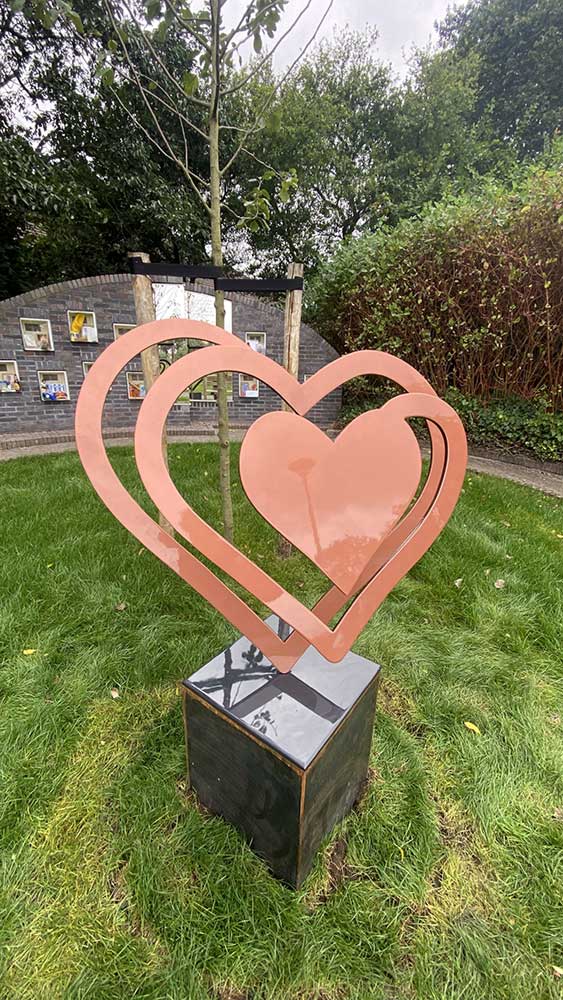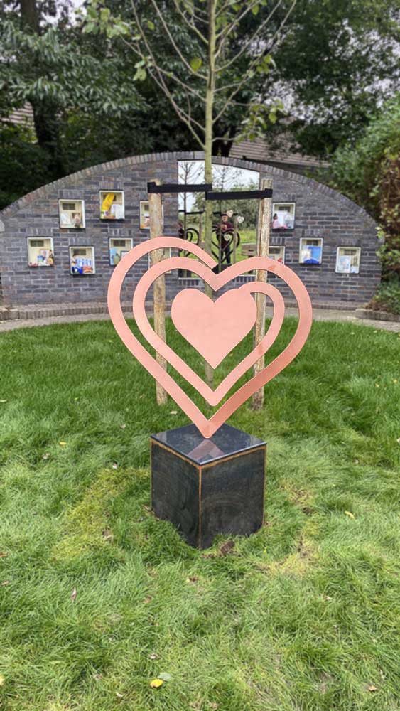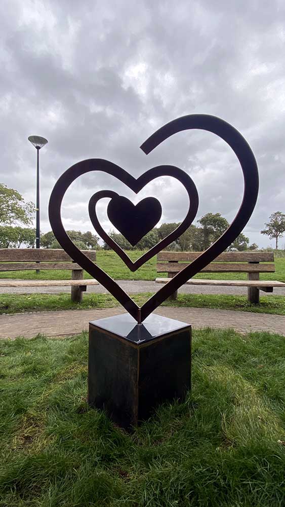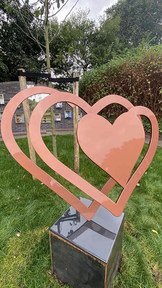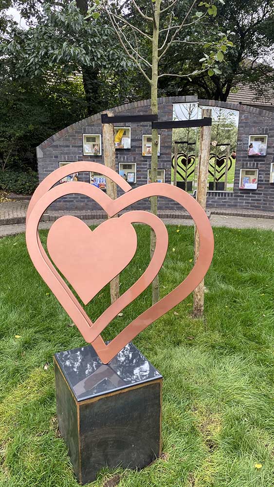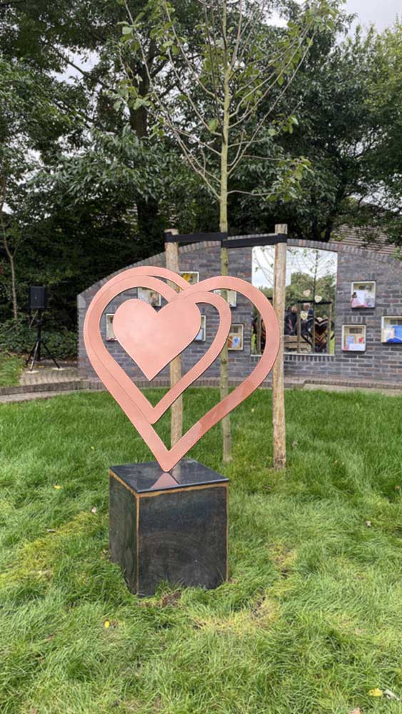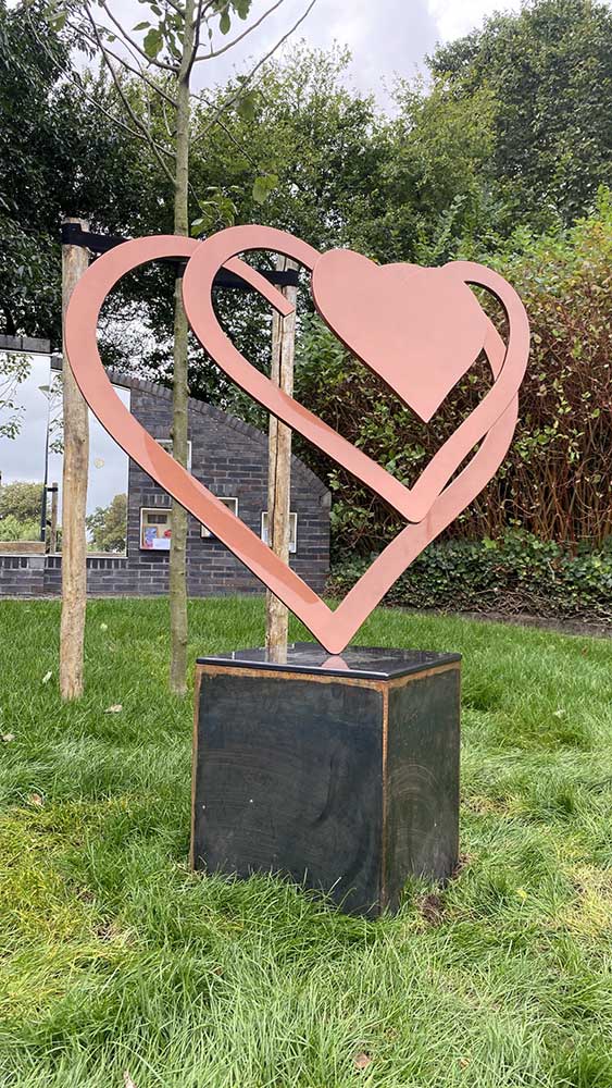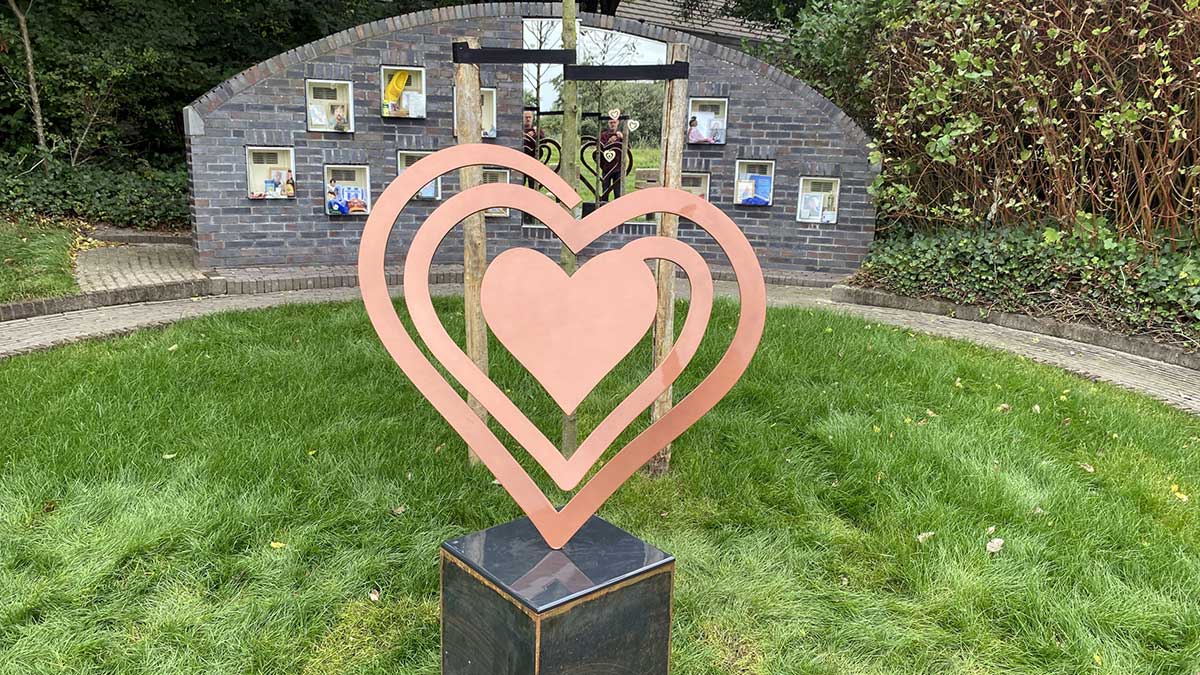 Tijdens de opening van de herinneringstuin met muziek, gedichten en werd het kunstwerk onthuld door een van de bewoners. Zij noemde het een kunstwerk “een hart vol van liefde”