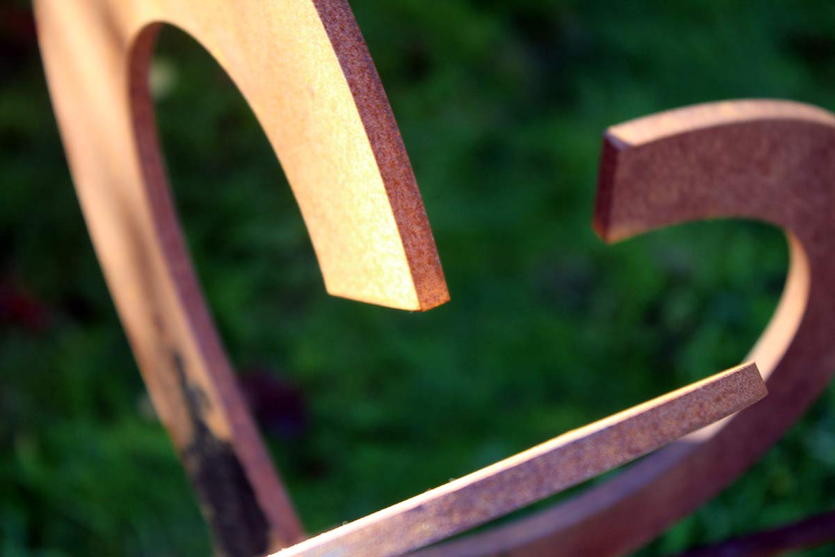 Letters van geroest staal of een cortenplaat waaruit letters zijn weggesneden; het zijn mooie mogelijkheden die relatief eenvoudig te realiseren zijn. Voor het uitsnijden gebruik ik de techniek van watersnijden: een bijzondere snijtechniek waarbij water onder hoge druk door staal heen kan snijden!