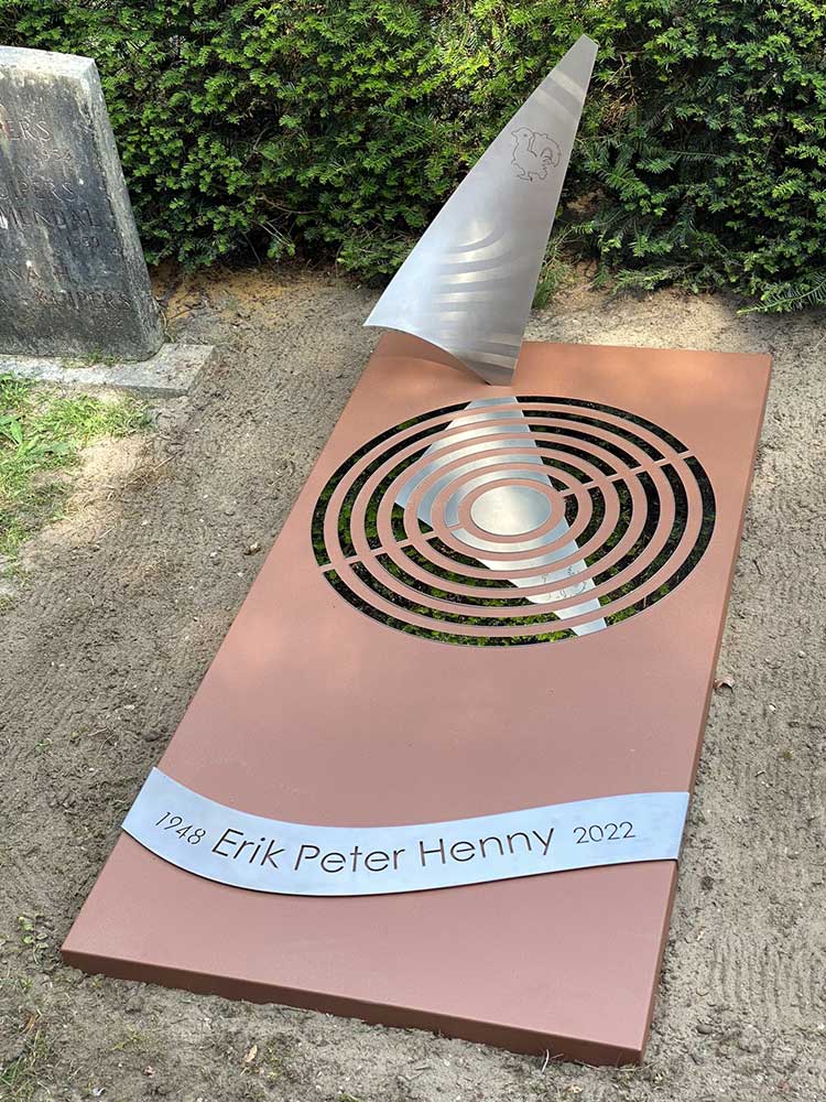 Grafkunst: grafzerk cortenstaal voor Erik Peter