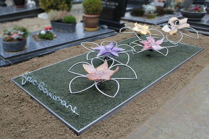 Een kunstzinnig grafmonument voor een bijzondere kleurrijke jonge vrouw. In samenspraak met de familie werd het een heel bijzonder en artistiek ontwerp. Kleurrijke glasgeblazen bloemen in combinatie met RVS. Met veel liefde en toewijding en in nauwe samenwerking met de nabestaanden kwam dit monument tot stand. Een kleurrijk en licht grafmonument passend bij van deze levenslustige jonge vrouw.