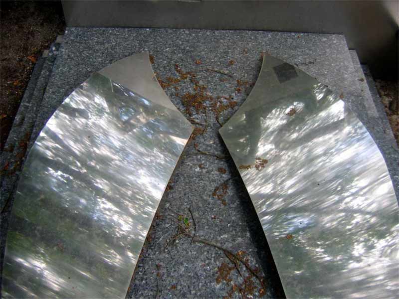 De foto’s zijn ruim zes jaar na de plaatsing van het grafmonument gemaakt op begraafplaats Zorgvlied. Het RVS is na al die jaren nog steeds strak en gaaf spiegelend. Het Inox is deels gepolijst en ook het mooie Noorse graniet heeft een diepe kleur, glans en uitstraling.