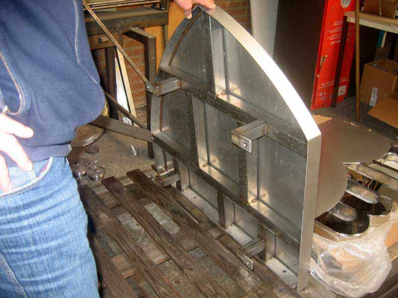 Eerst spraken we uitgebreid met de familie en hoorden welk drama Tim en daarmee het gezin was overkomen. De wens van de familie was een modern grafmonument van RVS maar dan warm en persoonlijk. We maakten verschillende schetsen en kleine ontwerpjes. De gezinsleden hadden duidelijk voorkeur voor één specifiek ontwerp maar met een diverse aanpassingen. Op basis van dit aangepaste ontwerp maakten we een “mock-up”. Dit ontwerp maakten we in de definitieve maten en afmetingen van MDF. Samen plaatsten we dit ontwerp op het graf van Tim om te kijken of de verhoudingen goed waren en om de familie een indruk te geven. Nadat het ontwerp op ware grootte was goedgekeurd begonnen we met de uitvoering in roestvast staal.