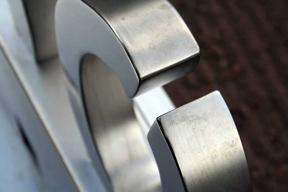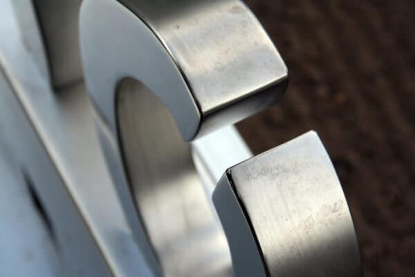 - Grote rechtopstaande RVS letters in eigen handschrift