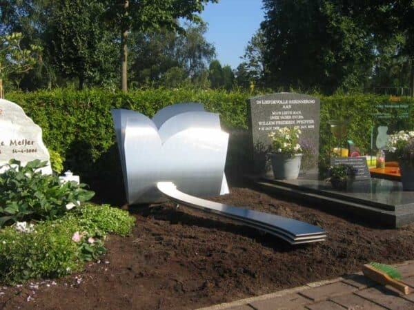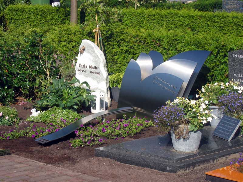 De ouders zochten een mooi ontwerp voor haar graf dat zou passen bij hun dochter. In samenspraak ontstond een mooi ontwerp en een RVS grafmonument dat paste bij de verwachtingen en de wensen van de ouders. Het ontwerp bestaat uit drie harten achter elkaar die samen met elkaar een bloem vormen.