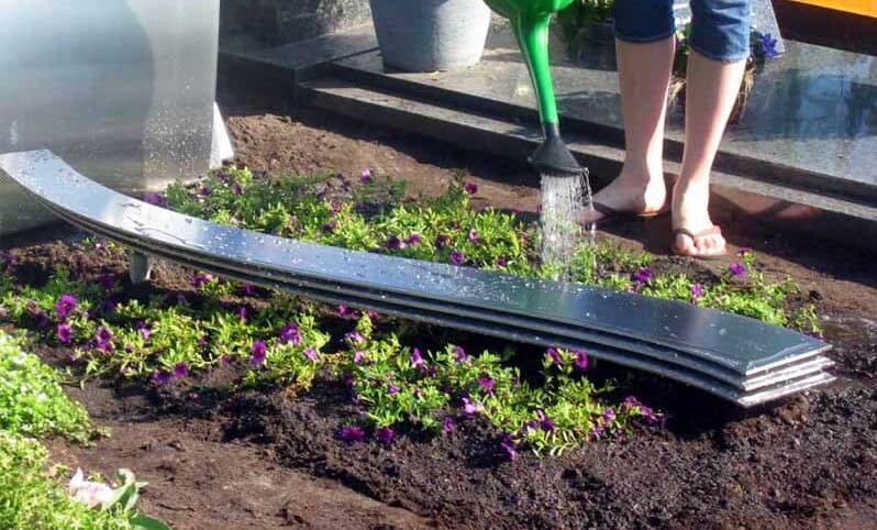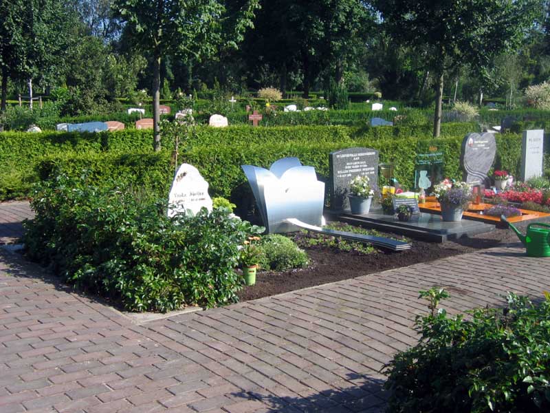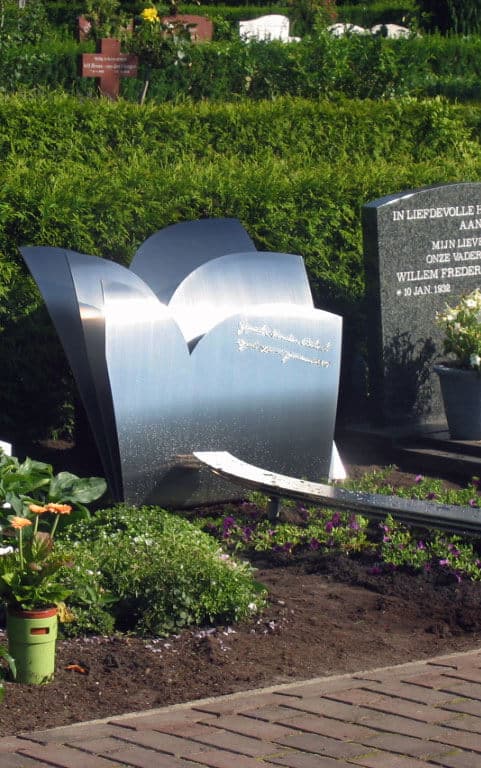 De ouders verzorgen het graf van hun dochter heel regelmatig. Vrijwel altijd zijn er verse bloeiende bloemen op te vinden. Het gedenkteken biedt daarom bewust ruimte voor veel bloemen en planten. Dankzij de vele bloemen in combinatie met het stralende RVS is het grafmonument een blikvanger tussen de andere graven.