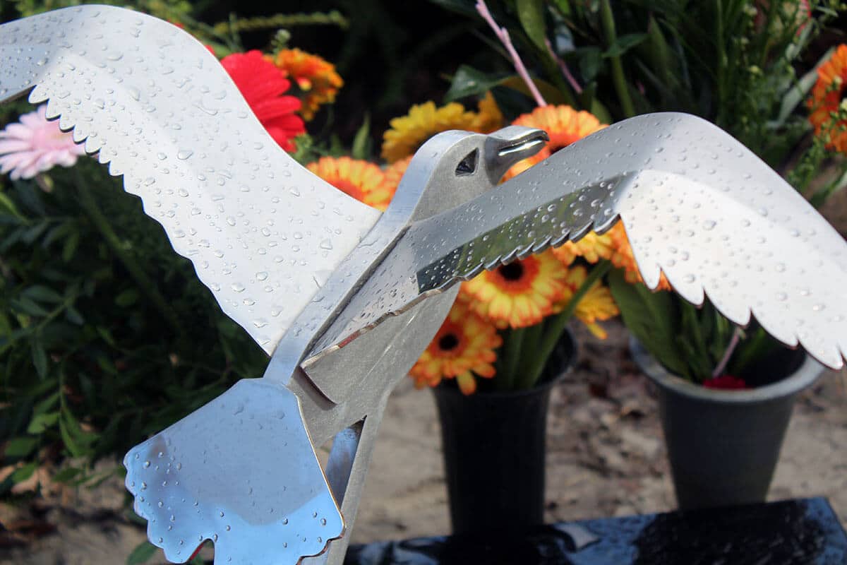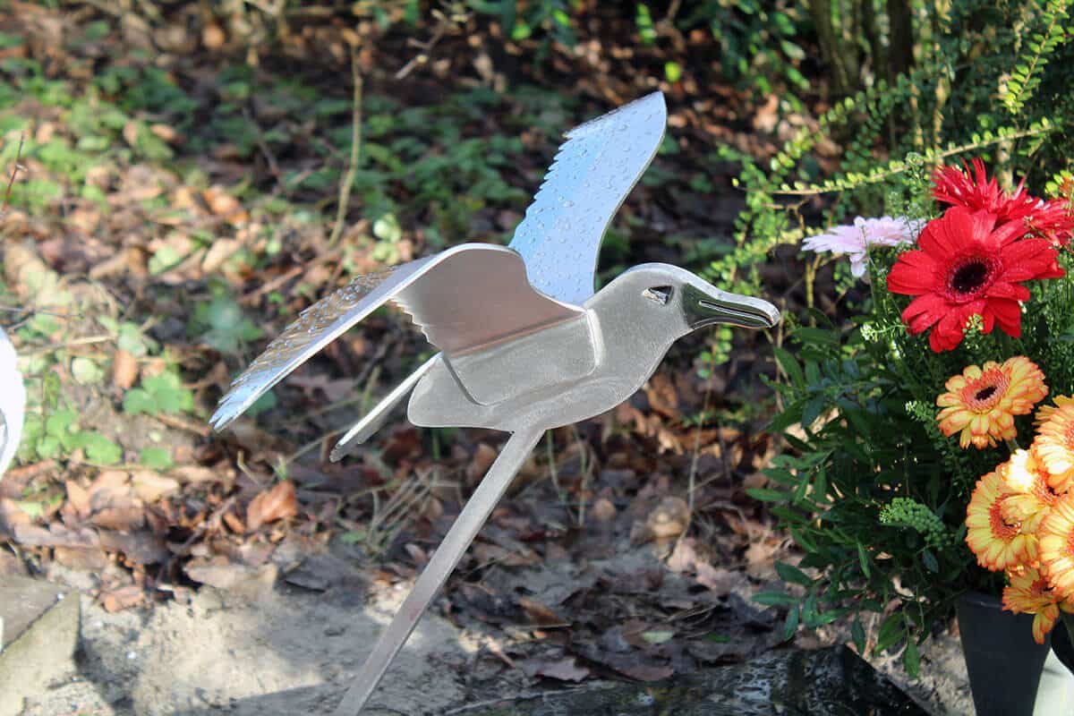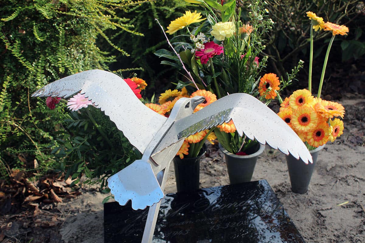 Een urnengrafsteen met een albatros zoals er geen andere bestaat! Dit RVS urnmonument met een gestileerde albatrosvogel is gemaakt voor Henk. Deze vogel symboliseerde hem als beste.